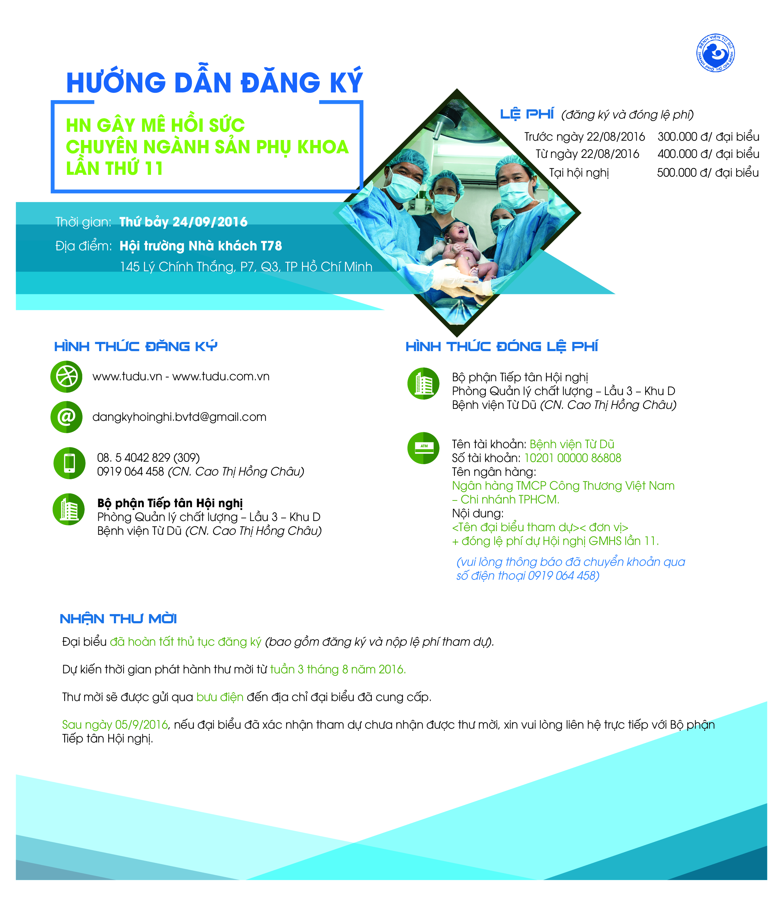 Ban Tổ chức Hội nghị trân trọng thông báo: Thư mời chính thức tham dự Hội nghị Gây mê hồi sức Sản Phụ khoa, năm 2025 đã được phát hành.